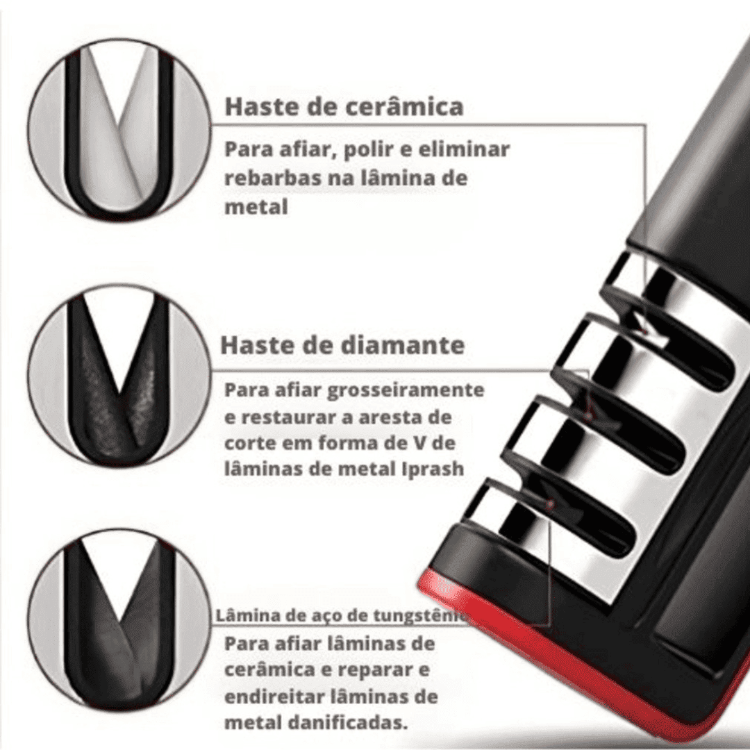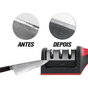 O Amolador Premium possui 3 etapas para que suas lâminas fiquem afiadas. Ele garante uma qualidade no processo sem variar a mesma.