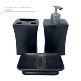 O kit é composto por 01 porta sabonete líquido 390ml, 01 porta escovas e 01 saboneteira.