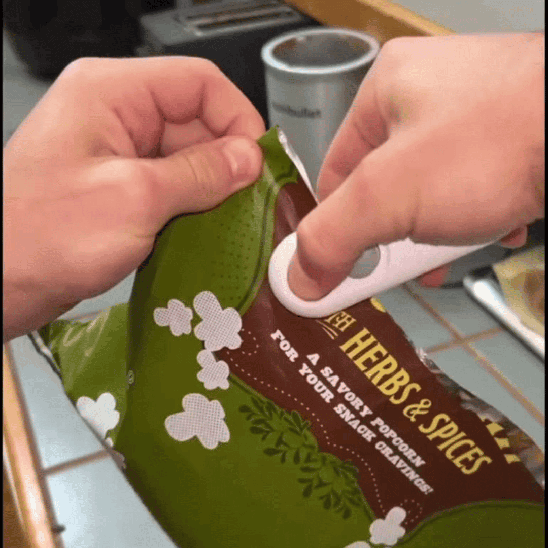- Fácil de usar – Basta deslizar a seladora sobre a embalagem para vedar completamente.
